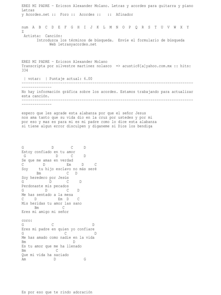 Eres Mi Amigo Fiel Acordes : Aprende a tocar el cifrado de eres mi amigo fiel (coalo zamorano) en cifra club. Eres Mi Amigo Fiel Acordes / Estrofa 1 quien soy yo para que en mi tu pienses, y que escuches, mi clamor.