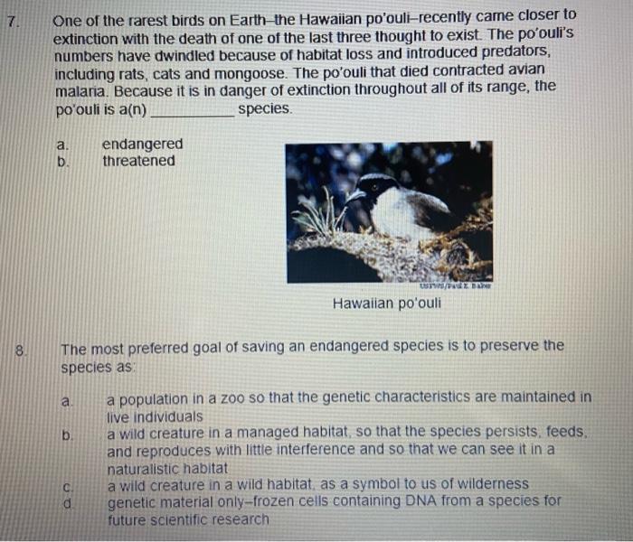 The Grizzly Bear Has Disappeared From Part Of Its Chegg Com - The po'ouli is now on the verge of extinction.