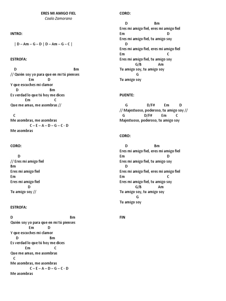 Eres Mi Amigo Fiel Friend Of God Chords - Encuentre mas letras y videos de coalo zamorano en album cancion y letra.